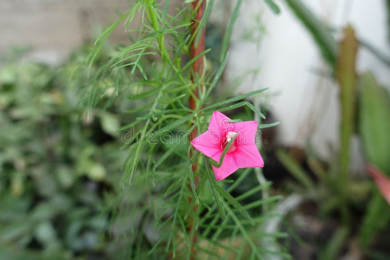 Cypress Vine With Star Shaped Red Flower Stock Photo Image Of Herbaceous Leaf 127888150